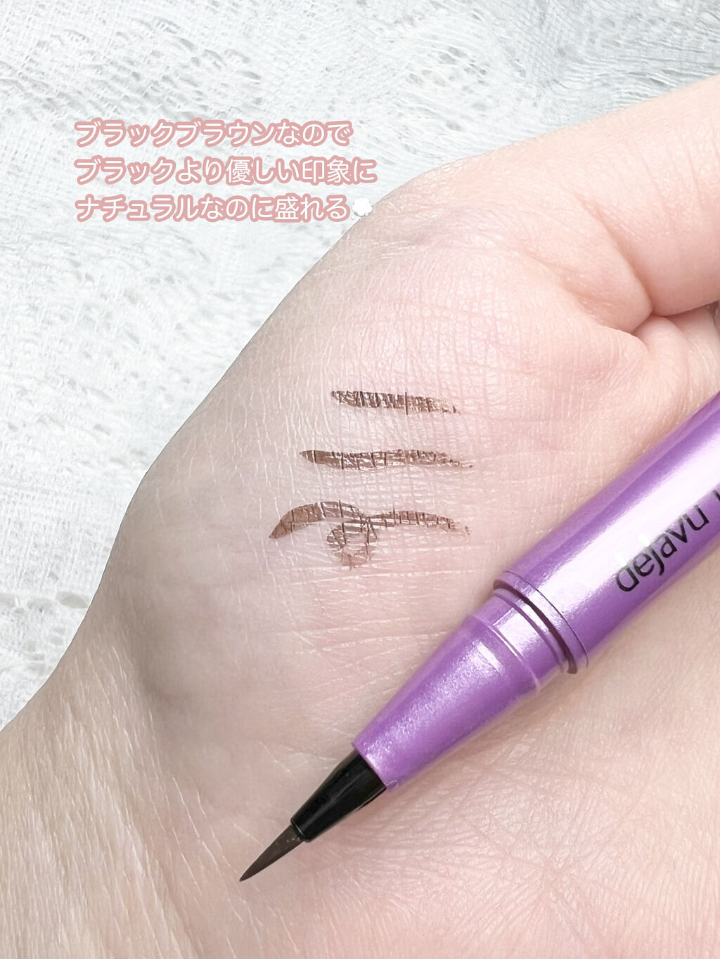 💜dejavuラスティンファインEショート筆リキッドミディアムブラウン💜筆先が“5mmのショート筆”で、筆が長すぎずしなりにくいため、安定して極細ラインが描けるよう設計されていてブレずに狙ったラインが描きやすいアイライナーです☺️皮脂・汗・涙...