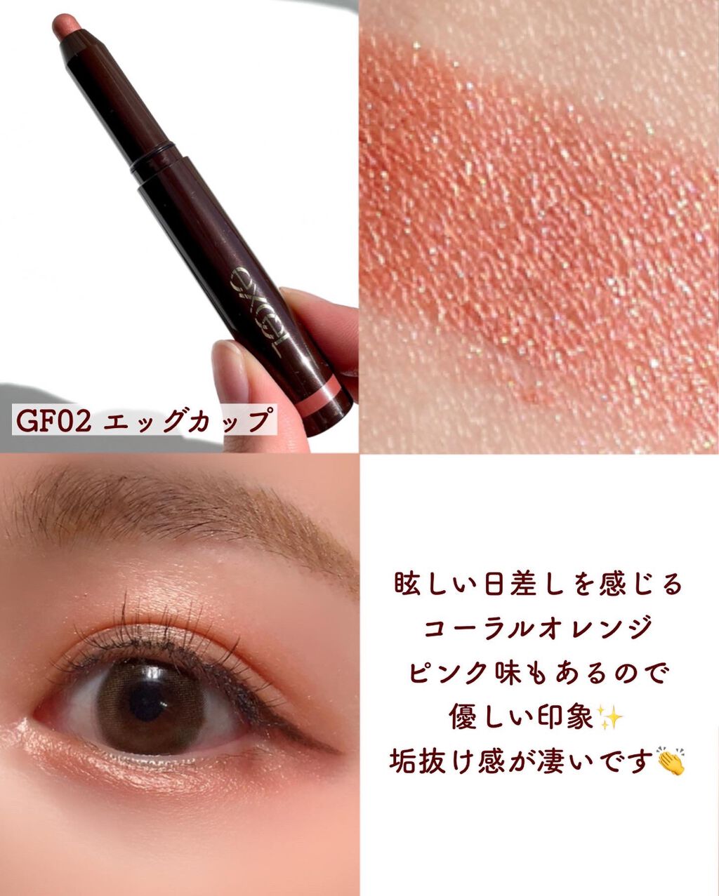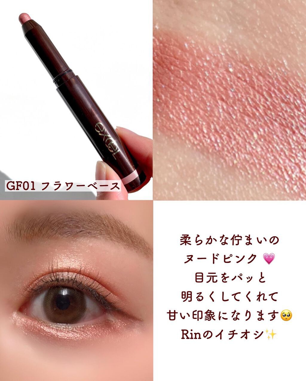 【#エクセル#excel】#グリームオンフィットシャドウ#GF02#エッグカップスティックアイシャドウの中でも大好きなこちらの商品💁♀️とにかくこの密着力がすごいんです!!一度密着すると擦っても落ちにくくてヨレにくいです👌ウォータープルーフ...