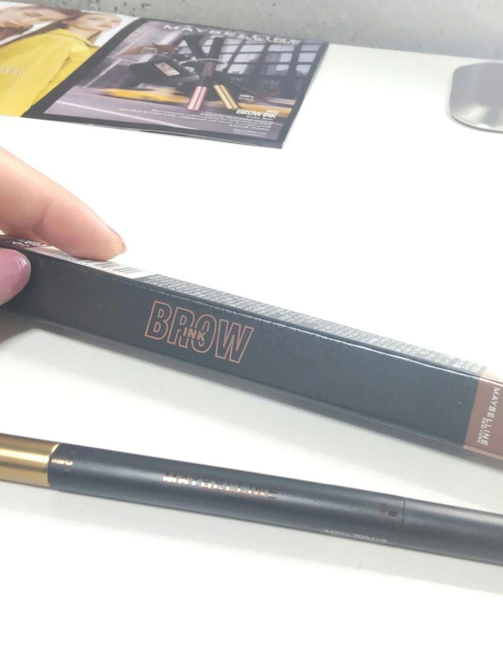 メイベリンのアイブロウペンシルとアイブロウマスカラが1本にまとまった便利なアイテム。 ほどほど細めの三角芯が描きやすいしアイブロウマスカラも細くて塗りやすく落ちにくい。 ただ、どっちを早く使い切るか…が問題。