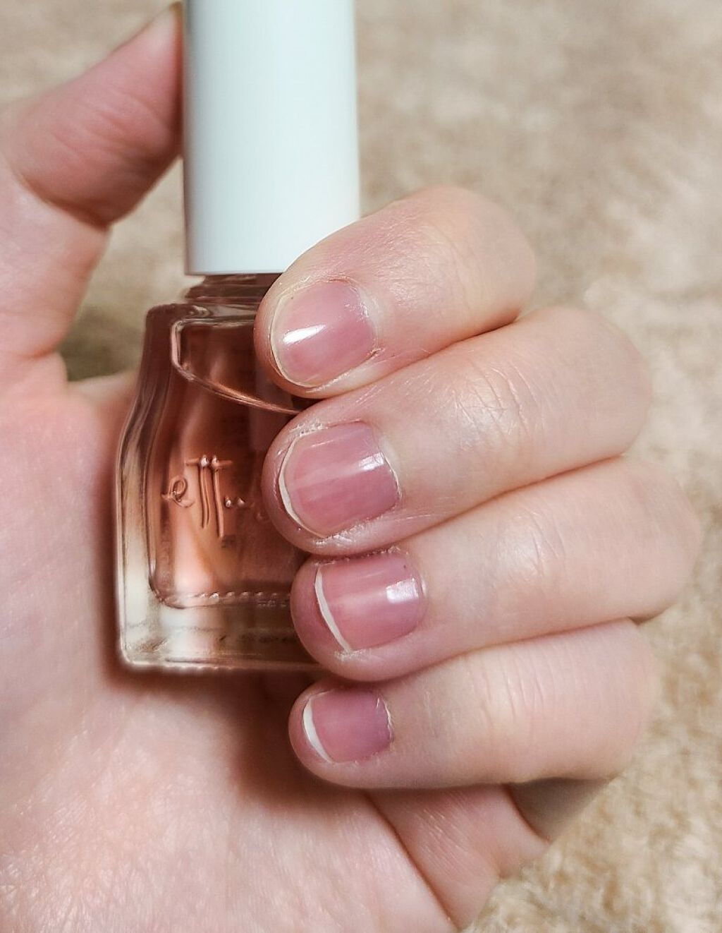 乾燥して縦シワが気になる… すぐ欠けてしまうのが気になる… そんなときにサッと塗れる艶出しネイル💅 リムーバー不要で塗るだけで簡単に爪補強に◎ 速乾性もあり忙しい方にもぴったりなネイルです✨ 根本的に爪が改善するわけではないのでハンドクリームやネイルオイルでの保湿ケアはもちろん大事です!!