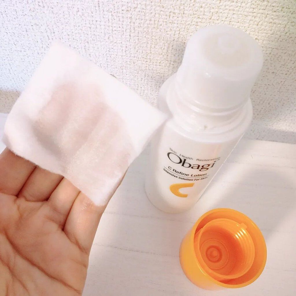 - <オバジC リファインローション> 水、エタノール、BG、グリセリン、DPG、アスコルビン酸、リン酸アスコルビルMg、フラーレン、アスコフィルムノドスムエキス、マクルラコチンチネンシス葉プレニルフラボノイド、ビワ葉エキス、チャ葉エキス、コンフリー葉エキス、プロパンジオール、クエン酸、クエン酸Na、PEG-60水添ヒマシ油、PEG-32、PPG-10メチルグルコース、コハク酸ジエトキシエチル、トレハロース、ポリアクリロイルジメチルタウリンNa、キサンタンガム、ポリソルベート60、ビオサッカリドガム-1、ジラウロイルグルタミン酸リシンNa、ソルビトール、t-ブタノール、PVP、EDTA-2Na、ピロ亜硫酸Na、香料