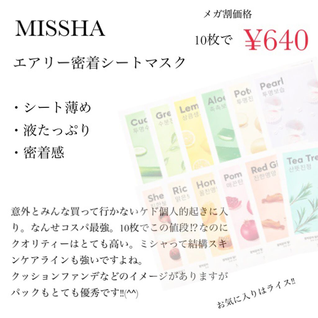 もっと見るおすすめアイテムMISSHA×シートマスク・パック