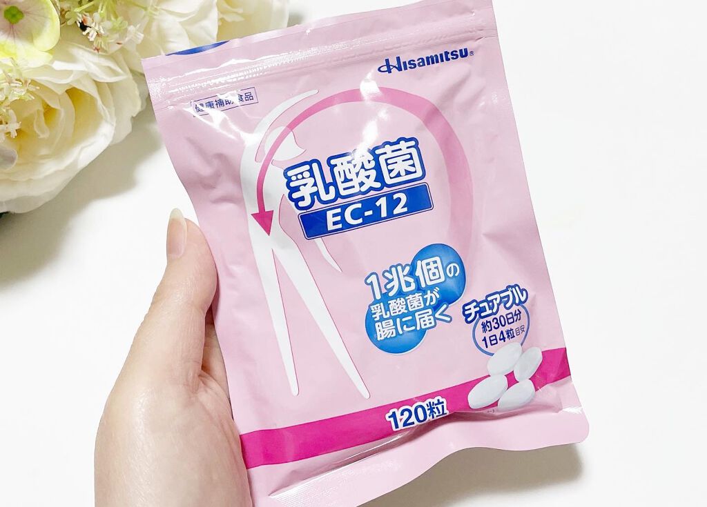 久光製薬株式会社さんの乳酸菌 EC-12 チュアブルは1袋に120粒入りです。 カロリーは4粒あたり5.12キロカロリーです。ダイエット中でも気にならないカロリーがうれしいです✨ チュアブルタイプなので、噛んで食べることができます。 爽快感のあるヨーグルト味がおいしいです🌈 お菓子のような感覚で楽しく続けられると感じました♪ 乳酸菌の他にもオリゴ糖などのサポート成分も配合されています。 4粒で10,000億個もの乳酸菌を補えるサプリメントです🎀 久光製薬株式会社さんの乳酸菌 EC-12 チュアブル120粒はおいしいし、手軽なので忙しい方も続けやすいサプリメントで大変よいと感じました🌈