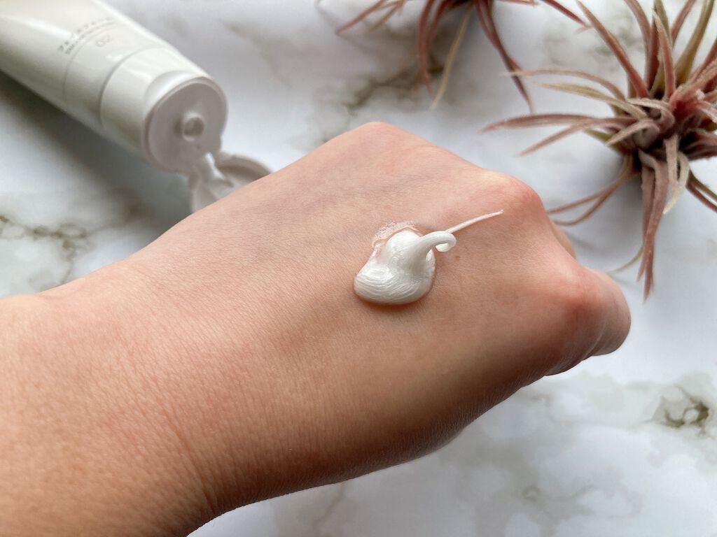 過剰な皮脂を吸着しながら角層へうるおいが浸透する、皮脂吸着パウダー&モイストカプセルを配合しているんだって😊 テクスチャーはやわらかくてクリーミィ感があり、伸ばしても軽やかです。 マットな仕上がりだけど、ほんの〜りツヤもあるかな。