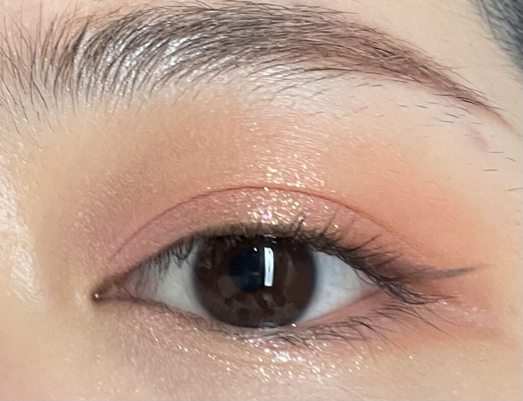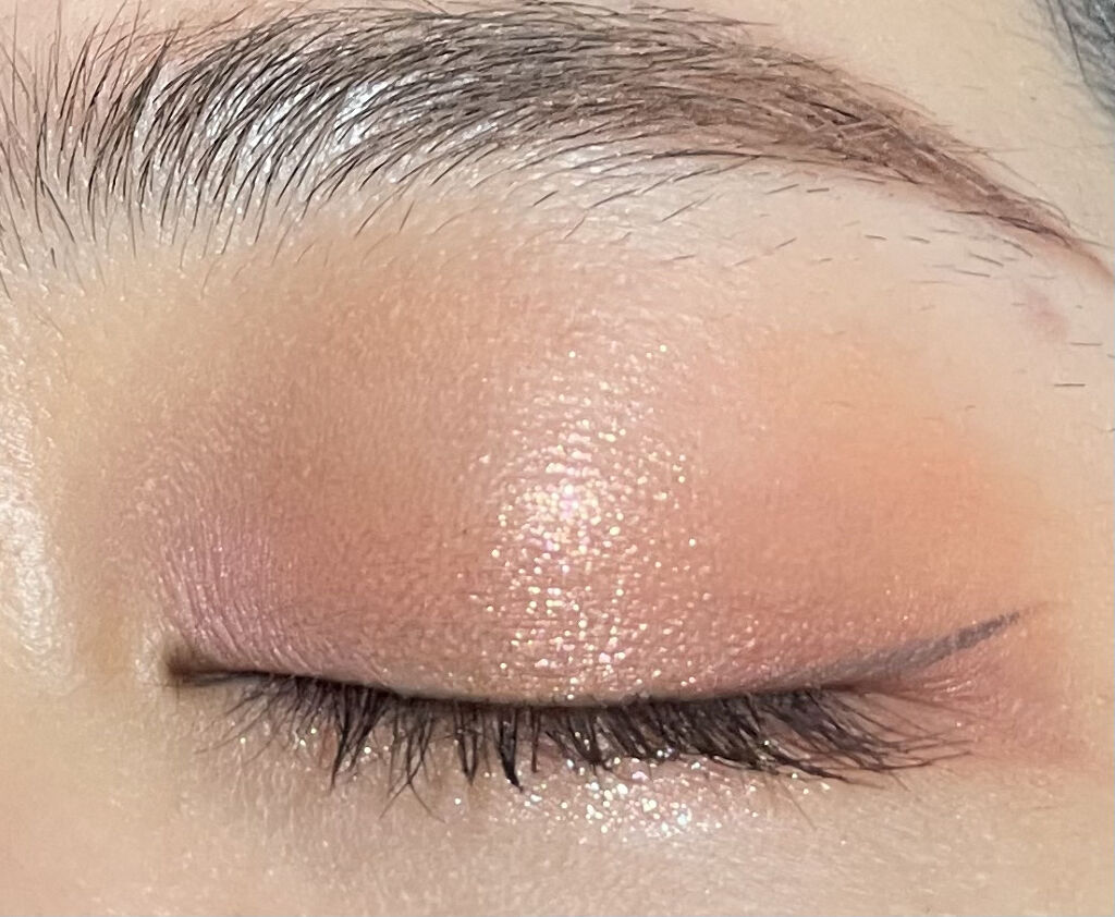 今回のアイシャドウは想像していたよりも発色が淡めでした。腕に出す時はなんぼでもぐりぐり濃くできますが、まぶたにのせる時は優しく何度も重ね塗りしなければなりませんでした。 ラメが超尊いです😍 あと、カラーアイライナーも超オススメです!発色もフェルトの描きやすさも落ちにくさも文句無しです!