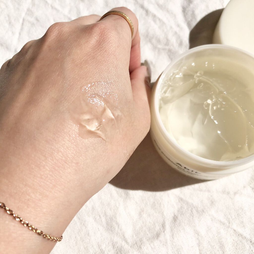 アイスランドのウェルプス氷河水で作られたスリーピングパック&水分クリーム。ヒアルロン酸*とセラミド*のダブル保湿で乾燥知らずのもっちり肌に😳 わらび餅みたいな弾力のあるテクスチャーで濃厚な水分クリームっぽい。素早くなじみ、ベタつかずにサラッと軽い使用感なのにぷりっぷりでびっくり…🥰 ベルガモット天然オイルの香り付きなのでアロマタイムを楽しんでみてね✨