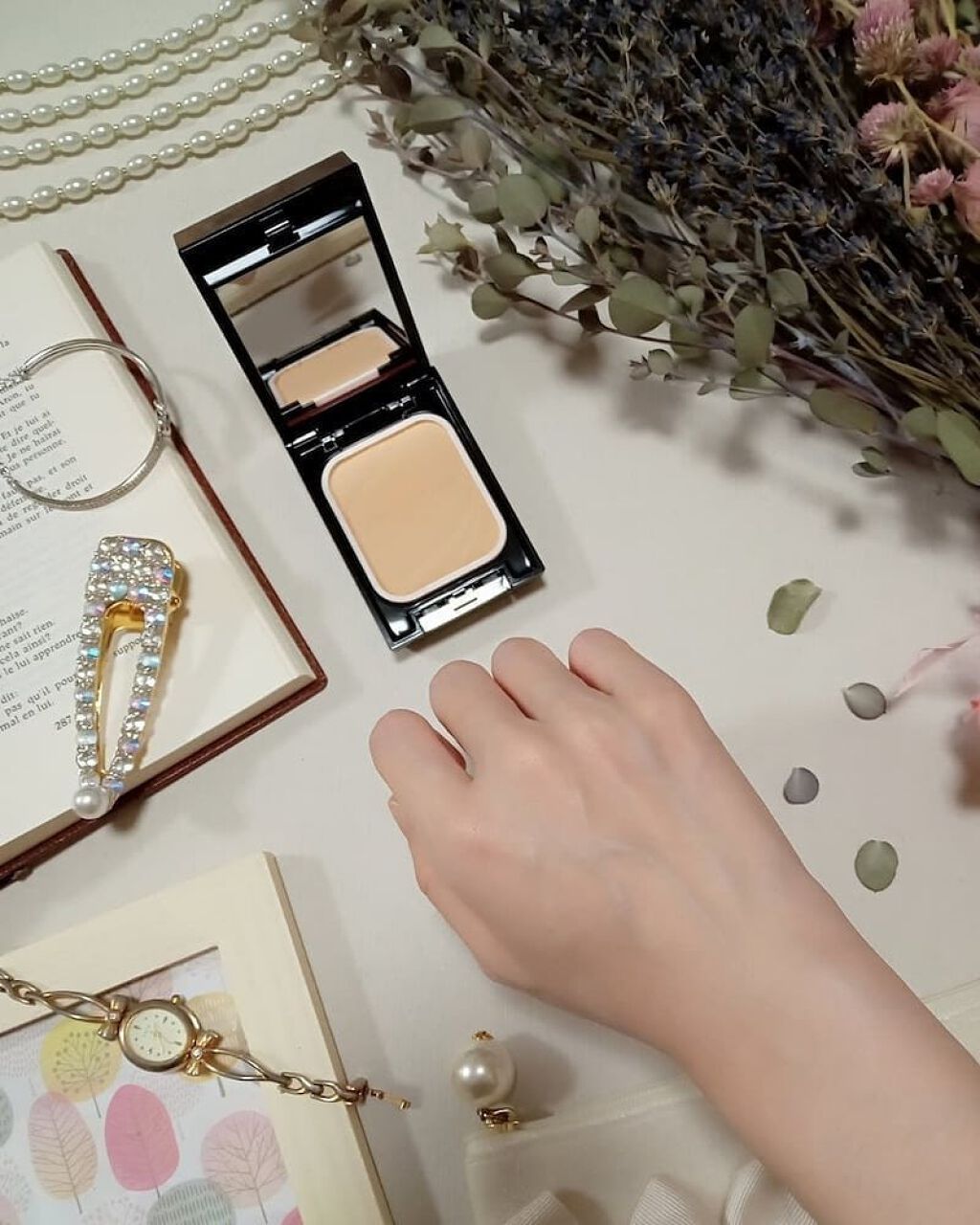 ふんわりとした仕上がりながら自然なツヤ感を演出するパウダーファンデ◎ 資生堂独自の「ムースプレス製法」により、美容液水とパウダーをムース状にして固めた軽やかなテクスチャーが特徴です。 肌に溶け込むようななめらかなフィット感で、毛穴や色ムラをふんわりとカバーしてくれる感じ。