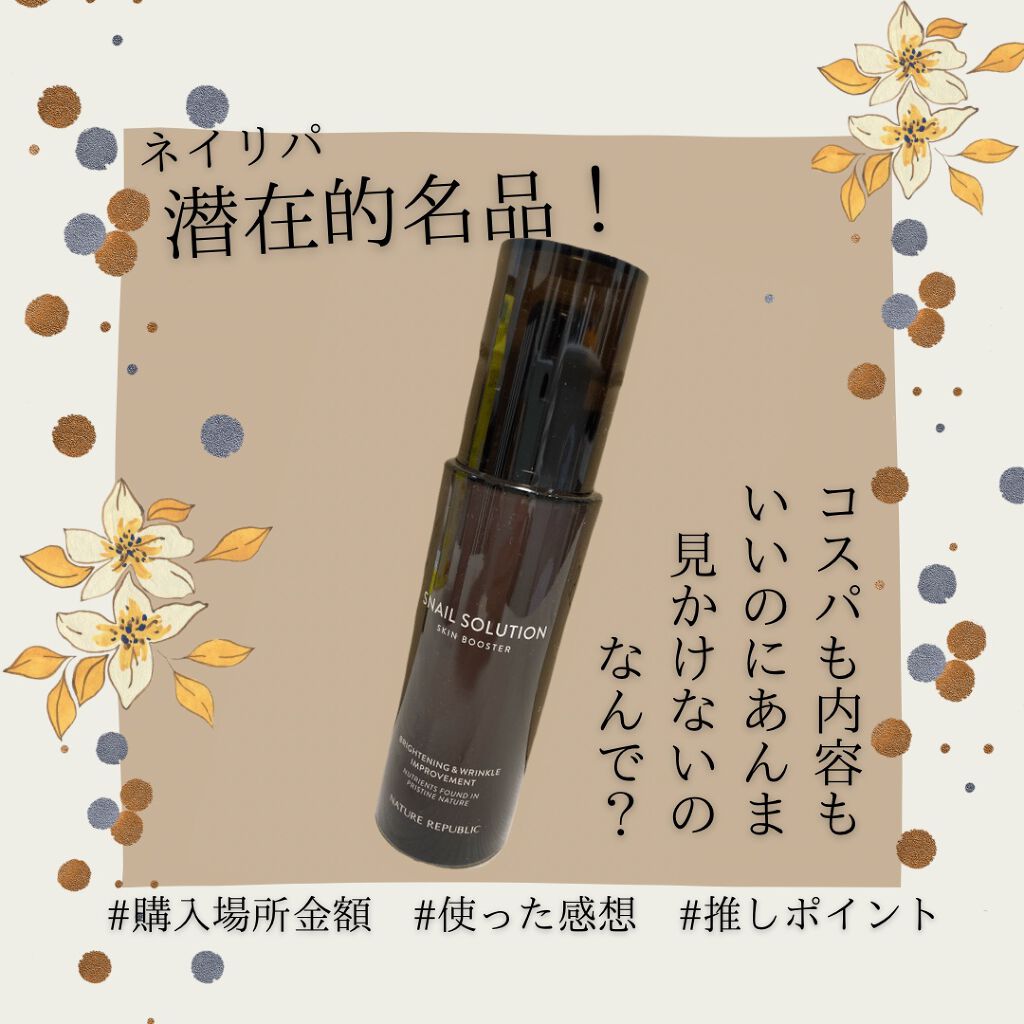 これは大当たりコスメで、旧パケ(茶色パケ)から愛用中💖茶色パケは3~4回リピした気がしてる!!ネイチャーリパブリックのSNAILSOLUTIONSKINBOOSTER!初めて使った瞬間から感動レベル…!誰だったかなぁ。punbakiさんかなぁ...