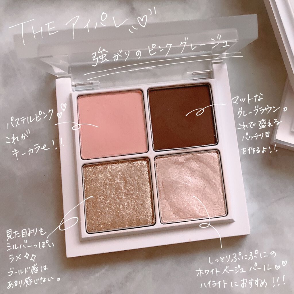 パレットだけ見るとピンクブラウンでピンクグレージュになる気はしない。でも、まぶたに重ねるとちゃんとピンクグレージュ… ラメもキレイだし、多くの方がその魅力にハマるのが分かる✨️ 色味的にも普段使いもしやすいと思います🙆