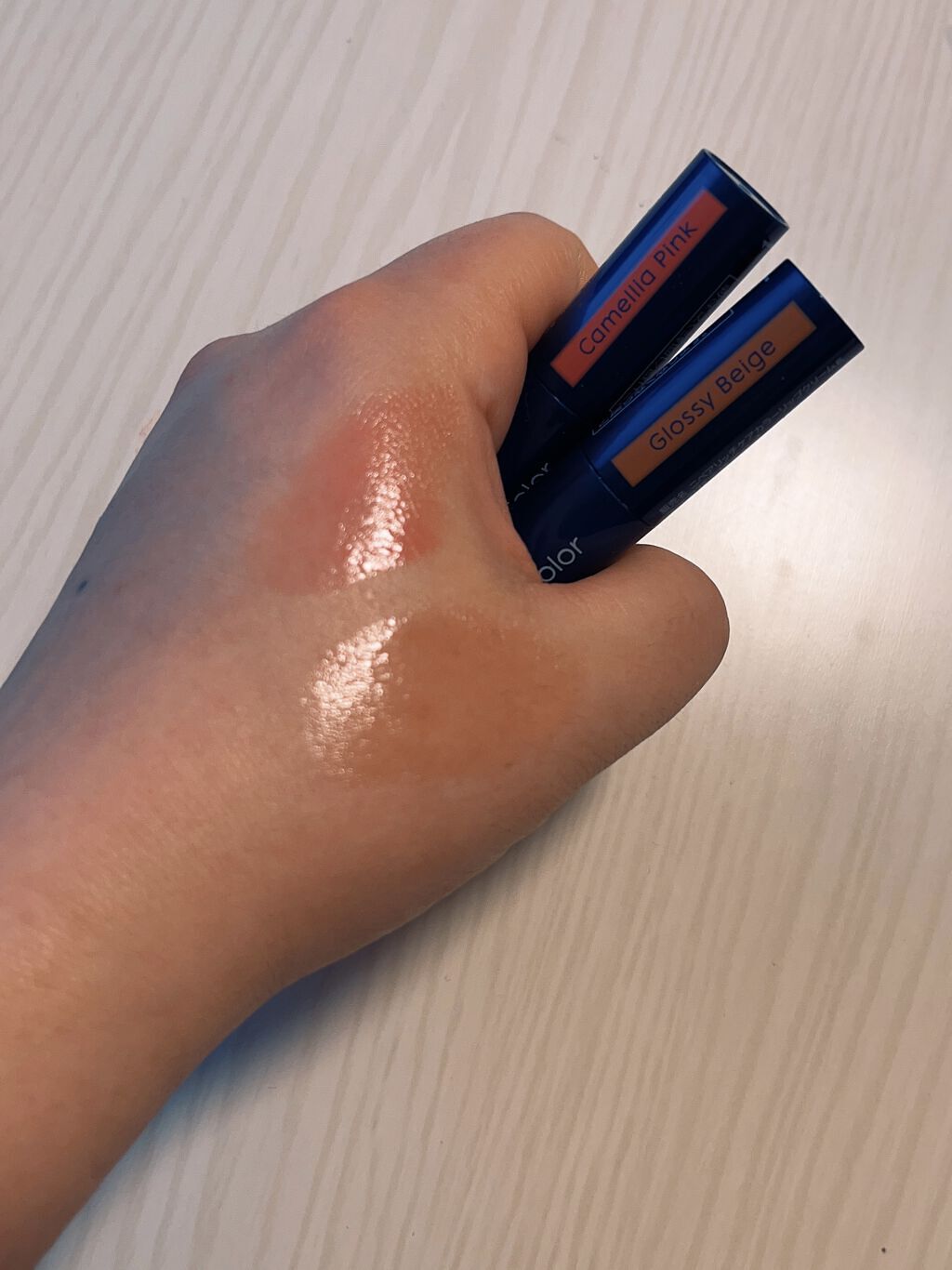 愛用していますニベアリッチケア&カラーリップスモーキーローズカメリアピンクスモーキーローズは2本持ちで、カメリアピンクは底見えしています。テカテカにならないのでつけやすく、リップクリームがわりにもなるので荷物を減らしたいときはこれだけ持ち歩い...