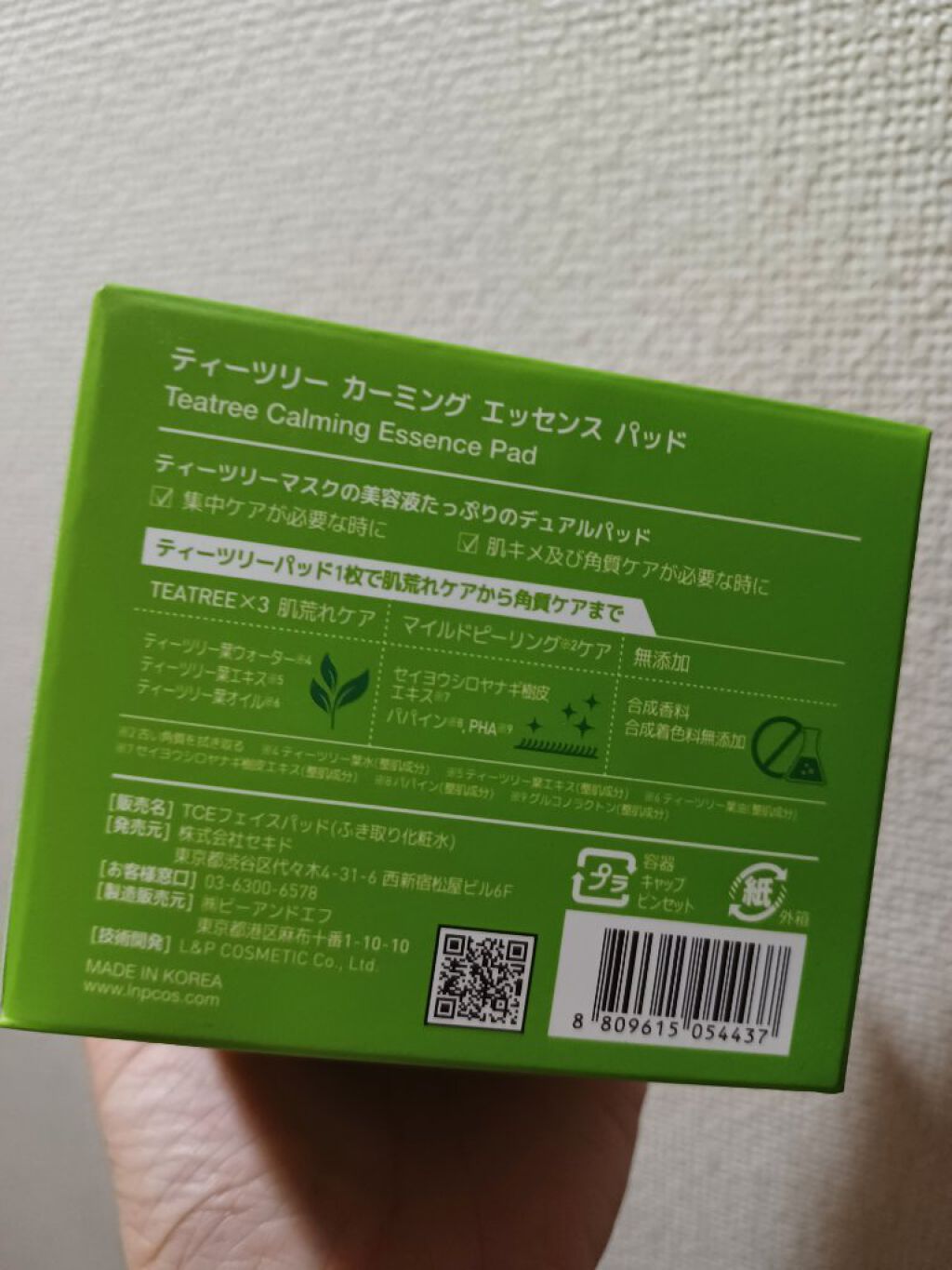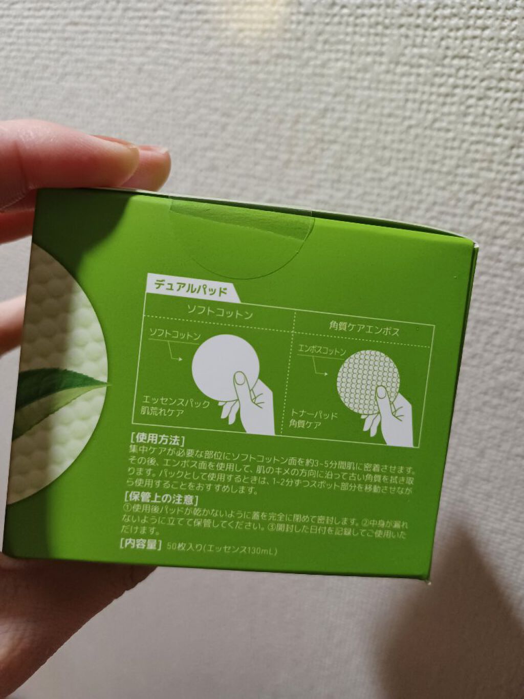 - 肌荒れを予防するティーツリーエッセンス(ティーツリー葉水、ティーツリー葉エキス、ティーツリー葉油の3種類を整肌成分として)を、コットン100%の肌に優しい使い心地のパッドに贅沢にたっぷり配合しております。 片面はエンボスコットン、もう片面がソフトコットンになった「デュアルパッド」になっており、用途に応じての使い分けが可能です。エンボスコットンの面は、手軽に角質・毛穴汚れをオフできる拭き取り化粧水としてお使いいただけます。ソフトコットンの面は、乾燥が気になる部分、肌荒れ予防や集中ケアしたい部分のポイントパックとしてお使いいただけます。 ※2022年9月以降パッケージリニューアル。