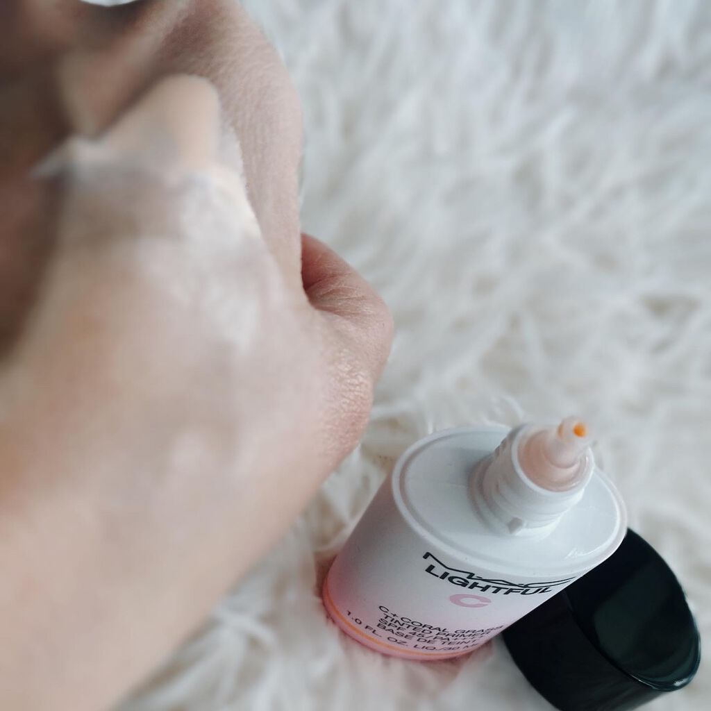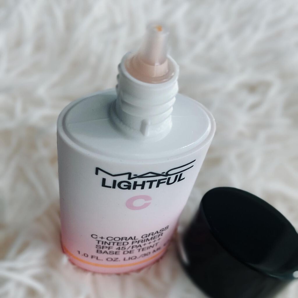 保湿感・ツヤ感・密着感◎ 【M・A・C/ライトフル C+ティンティッド プライマーSPF45】 緩めのテクスチャーで伸びが良いです◎ SPF45/PA+++++で紫外線対策もできてオススメ👾 保湿感があり、乾燥を感じにくくてお気に入り🫶🏻 ツヤ感が出て綺麗な仕上がりイメージ
