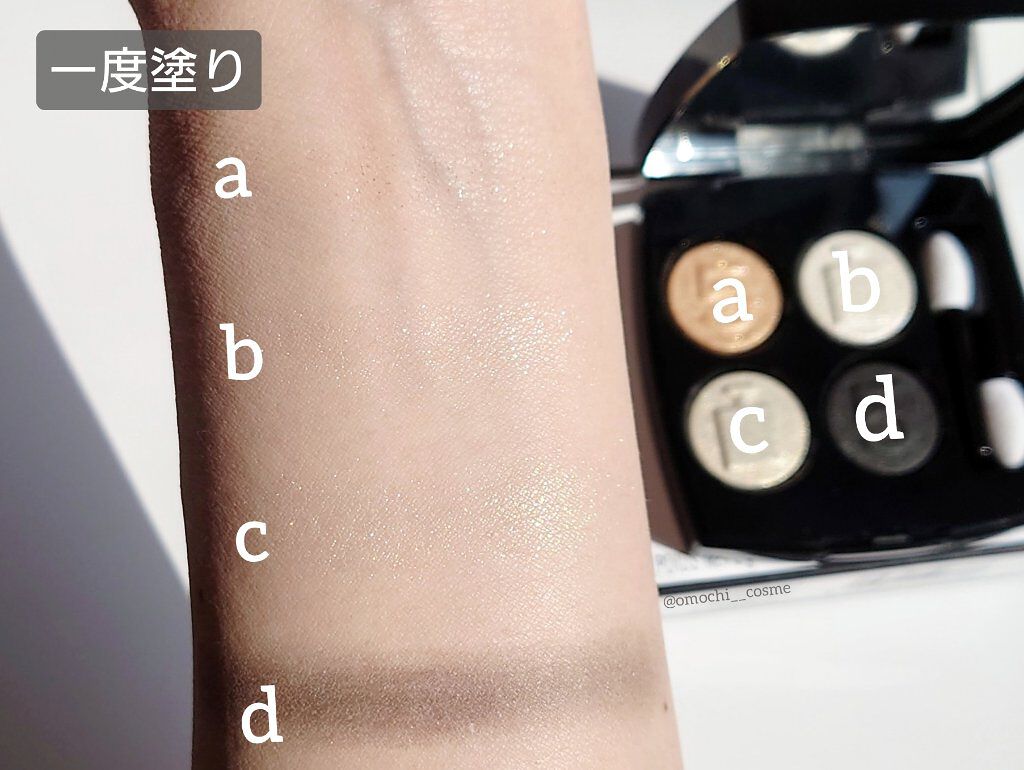 - 革新を極めてアイ メークアップの可能性を広げる、4色のアイシャドウ パレット。ソフトでつけやすいパウダーは、鮮やかに輝き、長時間美しい発色を保ちます。コンパクトにセットされた4色のシェードが、様々なハーモニーを可能にします。 大きなミラーを備えた、使いやすく持ち運びしやすいブラック ラッカー ケースにおさめられています。 仕上がり:4色は、どのようにも組み合わせて使うことができます。ナチュラルに、鮮やかに、洗練された雰囲気に、そしてスモーキーな目もとに。