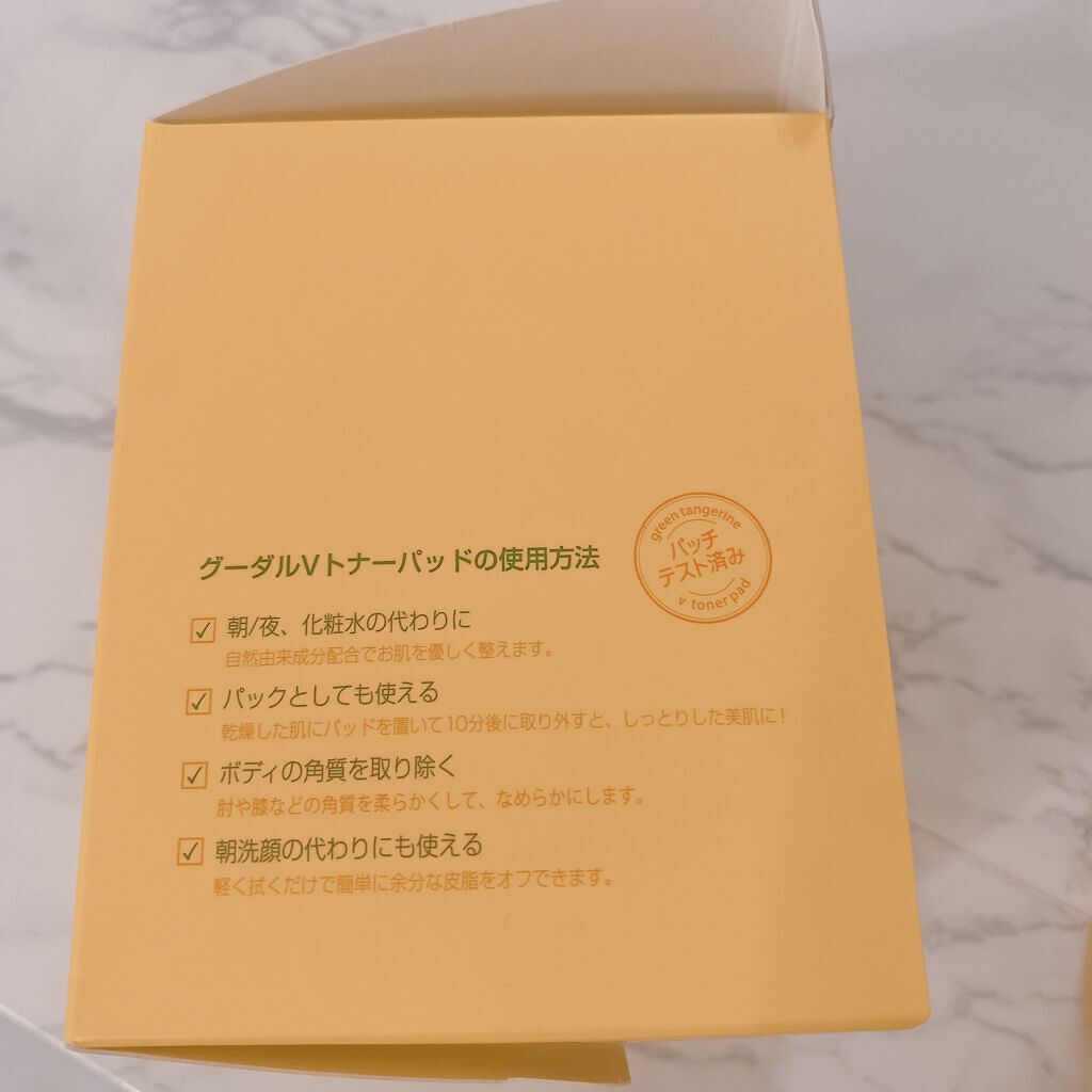 #goodal#グリーンタンジェリンビタCダークスポットケアパッドくすみの無い肌を目指したいならコレ💛✨️くすみはもちろん、肌トーンまでスッキリする神トナパ✍🏻!!使用感が本当にさっぱりしていて、油分感無し‼️エンボス面とスムース面で出来てい...