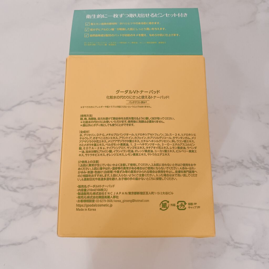 商品詳細情報goodal グリーンタンジェリン ビタCダークスポットケアパッド