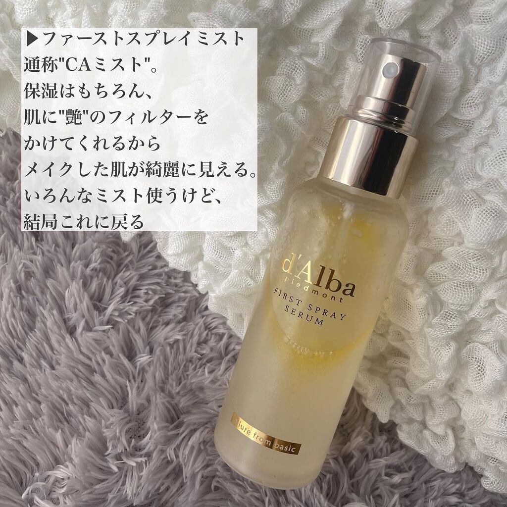 。.ꕤ‿ダルバホワイトトリュフファーストスプレーセラム‿ꕤ.。"CAミスト"人気だからずっと気になっていたけれど、オイルだから肌がべたつくイメージあって、肌に合わなかったらどうしよう…と買う勇気出ずだったのですが、ドンキでミニボトルが売ってい...