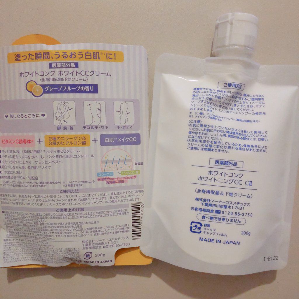 ホワイトコンク本当に自然にトーンアップしてくれる!思ったよりも白くなります😳去年の夏に右肩をひどく焼いてしまって…それを隠したいと思って買いました。かなり焼けていたので完全には隠せませんでしたが綺麗にトーンアップしてくれるので焼けていない肌と...