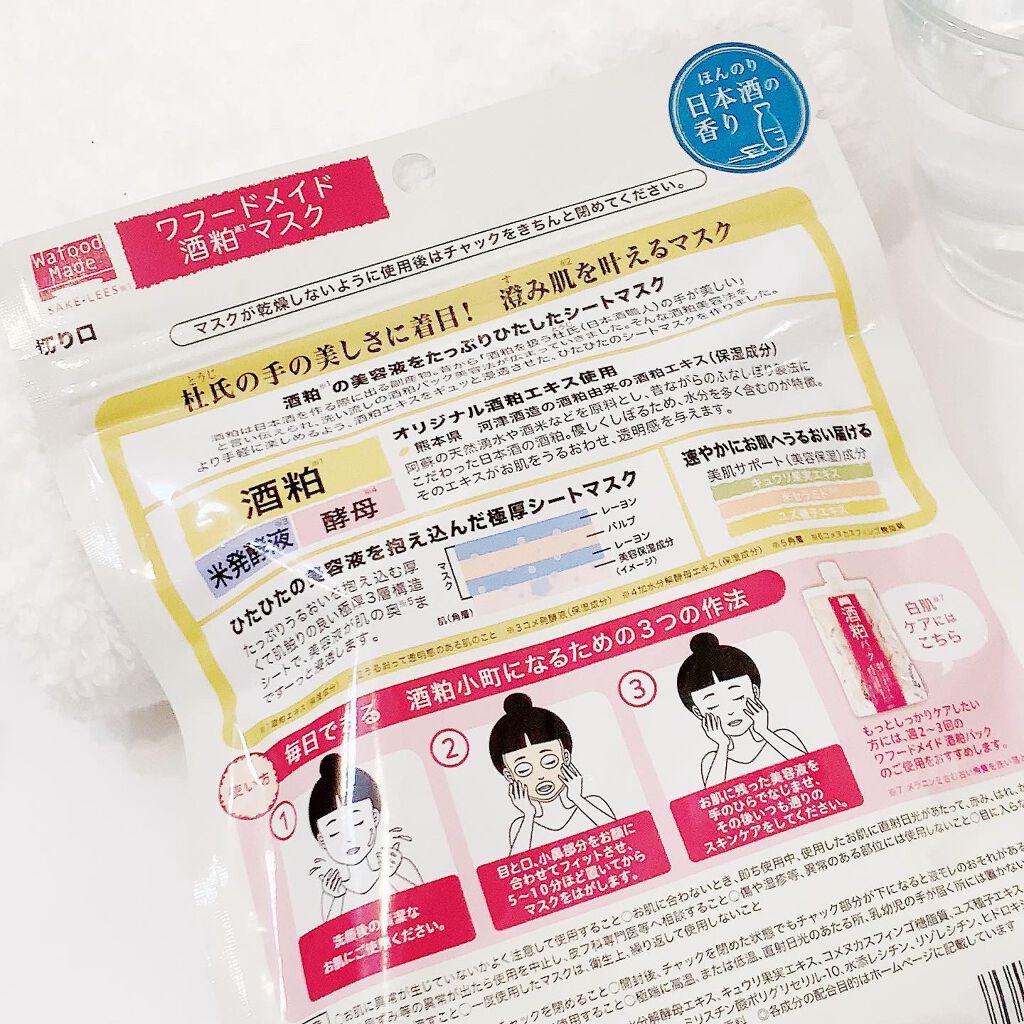 - オリジナル酒粕エキス配合の、美容液たっぷり高保湿シートマスクがリニューアル! 透明感ケアと乾燥対策がこれ1つで完了◎ ☆リニューアルポイント☆ ・オリジナル酒粕エキス配合量2倍⋆ ! 熊本県河津酒造の酒粕から抽出した、こだわりの酒粕エキスの配合量を増量しました。 ・日本酒の香りをより優しく お酒の香りが苦手な方でも使いやすくなりました。 酒粕=酒粕エキス(保湿成分) ⋆ワフードメイド SKマスクと比較して