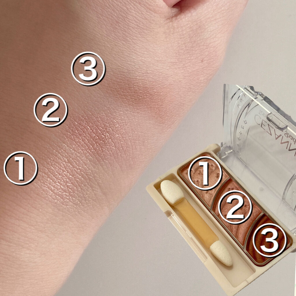 - 3色で簡単に明るく大きな目元に。 しっとり感触のアイシャドウ。 くすみを飛ばす明るさベース、ひとえ・奥二重の方でも幅広く塗れる肌なじみの良い中間色、 濃密高発色の締め色が目の輪郭を強調し大きな目元に。 微細パール配合でくすみを飛ばし、明るい目元へ。
