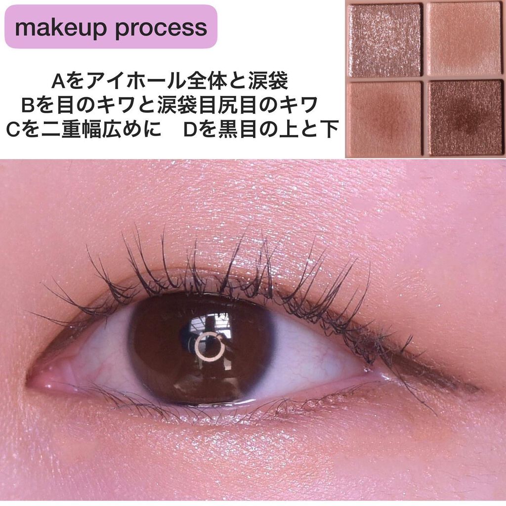 - ラメ・パール・マット3質感の4色アイシャドウ。 肌馴染みの良いベージュを基調としたカラー。ラメ・パール・マットの3質感を重ねて、自然にまぶたを強調し奥行のある大きな目元へ。 しっとり溶け込むような柔らかなパウダーなので、スルスル伸びてまぶたにピタッと密着。保湿成分(スクワラン・ホホバ種子油)配合。