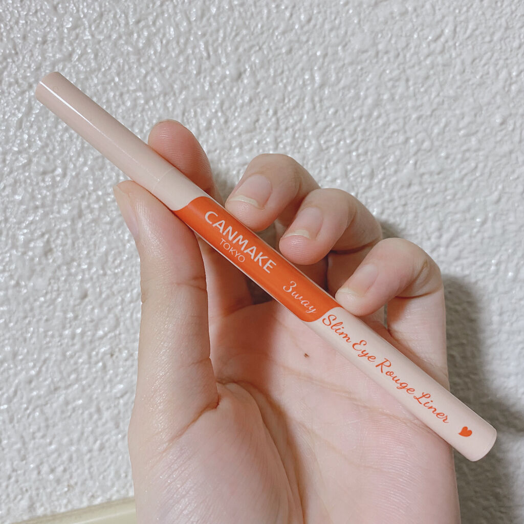 \ついに涙袋が⁈/キャンメイク3wayスリムアイルージュライナーNo.02シアーオレンジ涙袋が無いのがずっとコンプレックスで作りたくて作ってもなんか不自然...💭ググって真似しても違和感...💭筆が太いからか...?と思い、先が細くて描きやす...