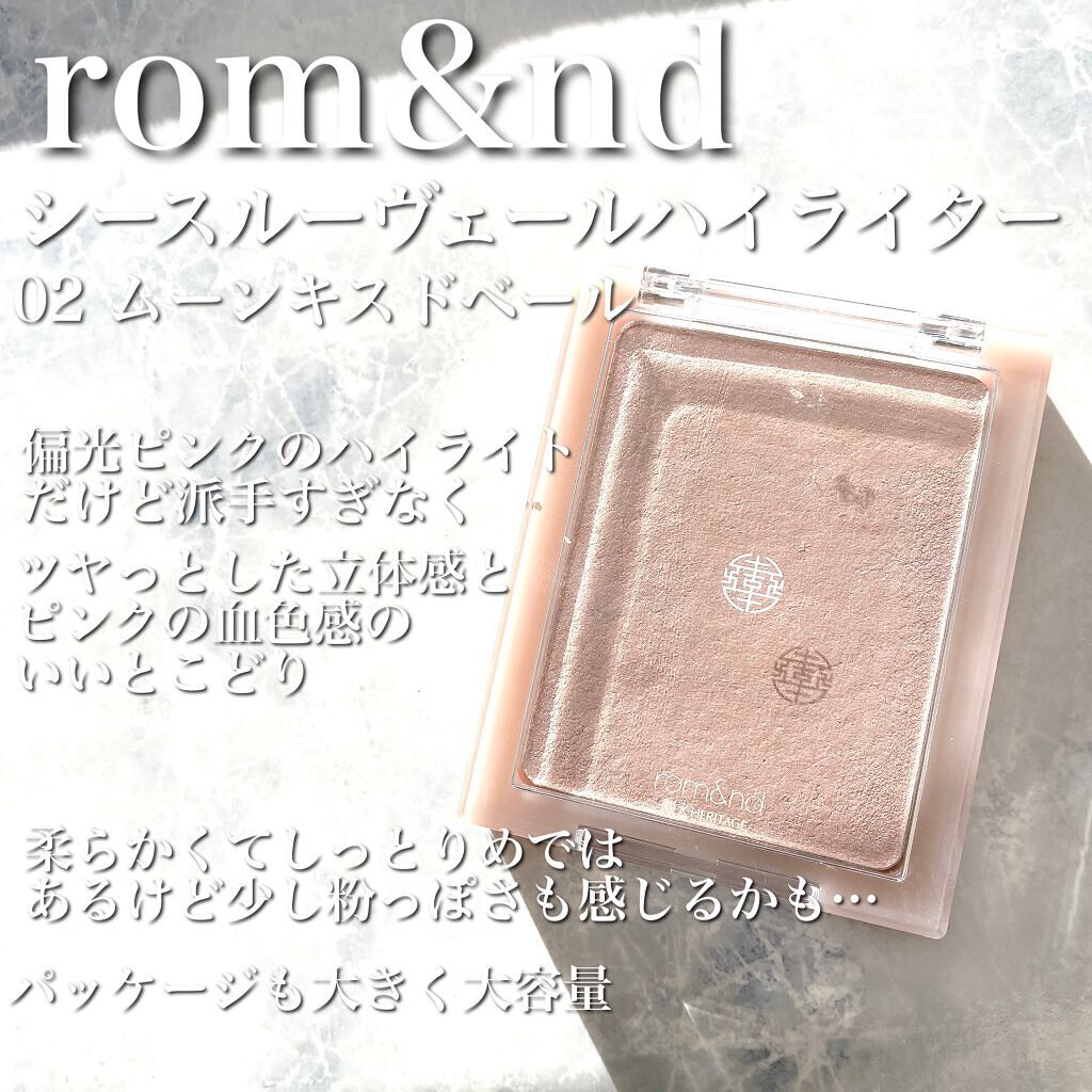 rom&ndヴェールライター02ムーンキスドベールmoonkissedveil🎀ピンク色の艶で、多幸感溢れる肌にしてくれます。チークの代わりや涙袋に使っても可愛いです。チークと鼻の頭にぬると統一感が出るからおすすめ✨バズっただけあるよね!いつ...