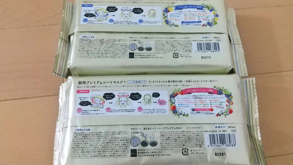 どちらも、プレミアムなだけあり、普通のサボリーノよりも、しっかりと保湿されているなー。とすぐに感じるようなマスクです! 目覚まシートは、アップルコンフィの香りで、爽やかさもありつつ、甘い感じもあるような匂いです! すぐに眠れマスクは、スウィートフルールの香りで、こちらは、目覚まシートよりも、爽やかさがあり華やかな香りがします! このマスクは、1枚60秒で、化粧水、乳液、美容液、クリーム、パックまで全て完了します! 使用感は、どちらとも素晴らしく、新しいサボリーノに出会えた気がしました! 少しお値段が高いのですが、それなりの保湿力や、香り、使い心地などが素晴らしいです! 目覚まシートの方はメントール感が控えめになっているのでヒリヒリ、すーすーするのが苦手な方でも挑戦しやすいと思います! サボリーノは多分共通ですが、シートが伸びるのでどんな顔の形でも対応出来ると思います!