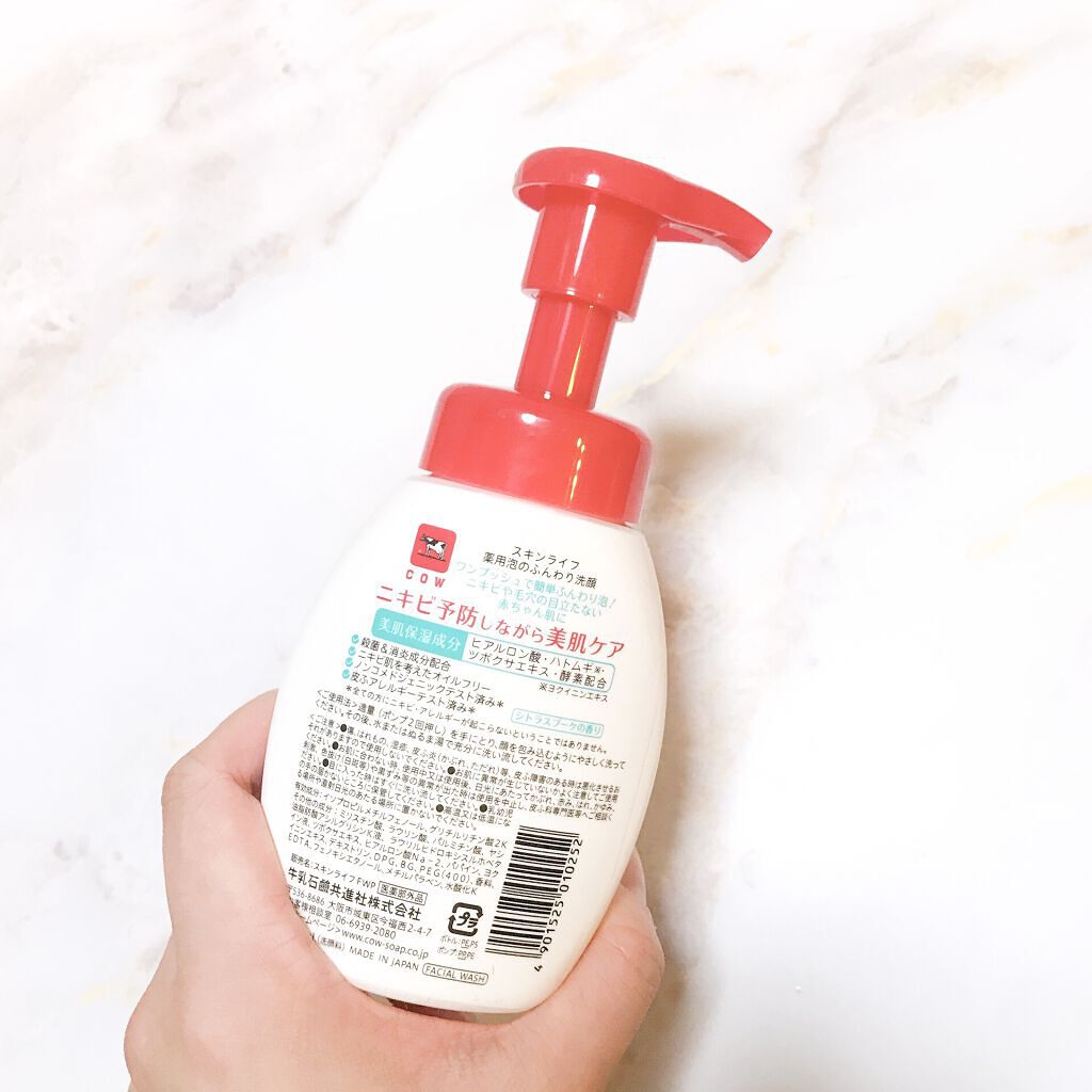 - ニキビ予防しながら美肌ケアができる牛乳石鹸のスキンケアシリーズ。ワンプッシュで簡単ふんわり泡。ニキビのもとや毛穴汚れをすっきり落とし、ニキビを予防して毛穴の目立たない赤ちゃん肌に。保湿成分として、ヒアルロン酸・ハトムギ(ヨクイニンエキス)・ツボクサエキス・酵素を配合。オイルフリー。ノンコメドジェニックテスト済み。シトラスブーケの香りです。医薬部外品