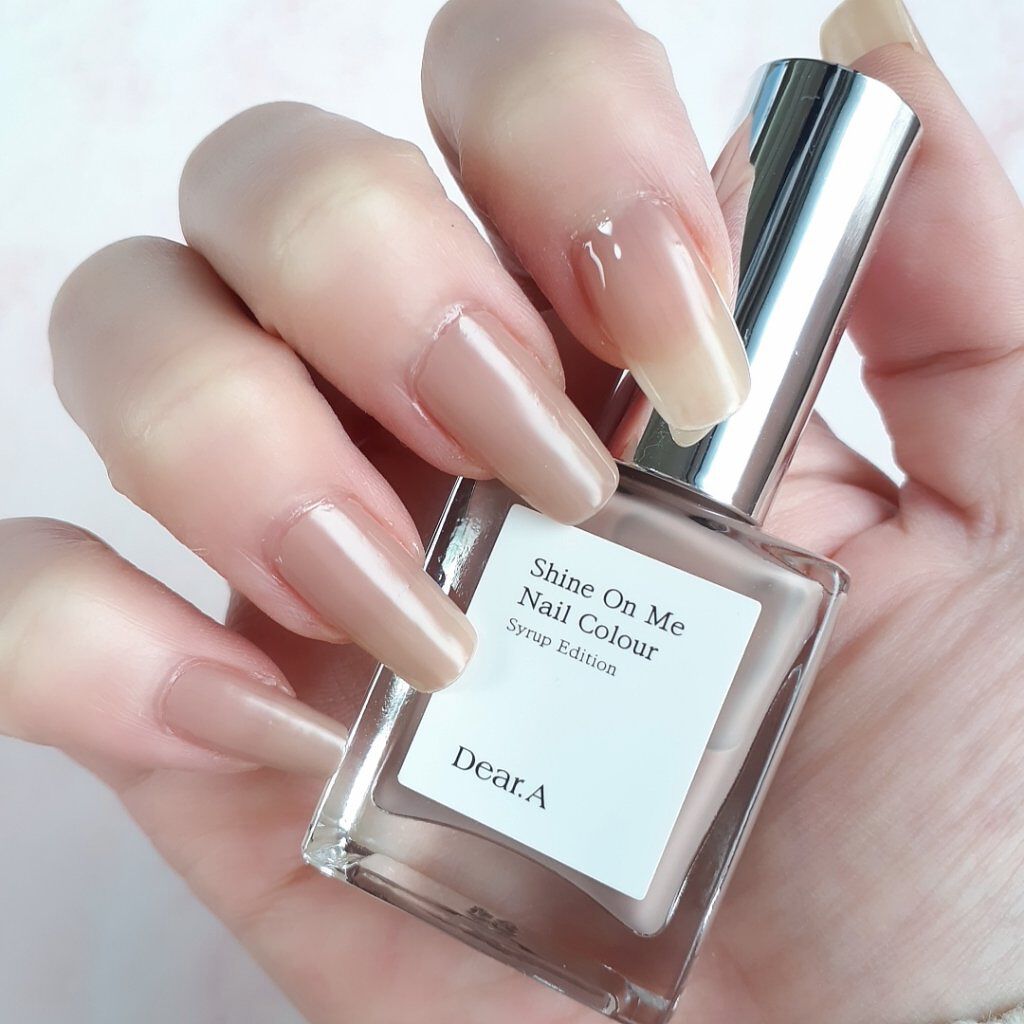秋にぴったりなくすみピンクに大小のラメがチラチラ光ってとてもかわいい~😍 くすみピンクの色も青み過ぎず黄み過ぎず肌になじむ本当にちょうどいい色❣️ はげてきても目立たなさそう(笑) 一度塗りから三度塗りまでできるそうですが、私は一度塗りだと物足りなく、写真は二度塗りしたものです💕 三度塗りだともっとくっきり色が出るのかな☺️ すごく速乾で重ね塗りにも向いててとても良いと思いました~ 色違いでグレージュもあり、お気に入りのシュガードールの限定色に似ていたのでシュガードールなくなったらそっちもほしいなと思いました☺️