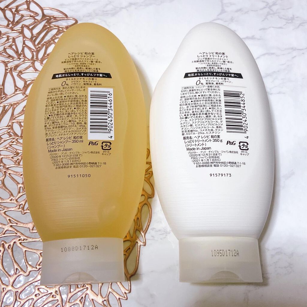 - ヘアレシピ『和の実』から誕生。 髪のスーパーフード「ライスオイル」配合の、お米発想のヘアケア。 乾燥してパサついた髪におすすめな、「しっとり」シャンプー&トリートメント。 髪の内側に「ライスオイル」が浸透し、乾燥した髪を根元から毛先までしっかり保湿。地肌からしっとり、すっぴんツヤ髪へ。 さくらとシナモンの香りです。 5つの成分無添加:シリコン、サルフェート、パラベン、鉱物油、着色料フリー。 なのに、ふんわりもちもちの泡でしっとりとした仕上がりに。 ※トリートメントは、サルフェート、パラベン、鉱物油、着色料フリー。
