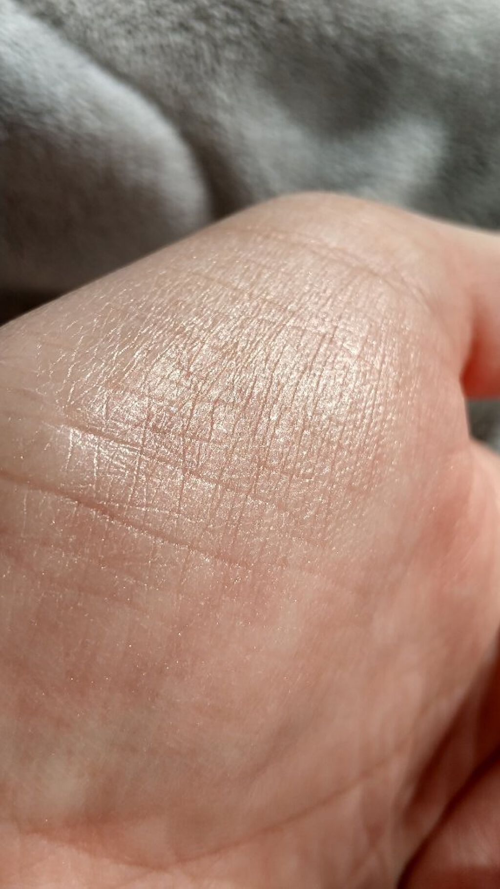 左上、左下、真ん中上、真ん中下、右上、右下という順番でスウォッチしてみました。 出してみると商品の写真より肌にのせたほうがくすみが出るかな✨という印象です😌 伸ばしやすくて指でも筆でもつけやすいです☺️💕 とっても可愛いカラーなのでオススメです💠