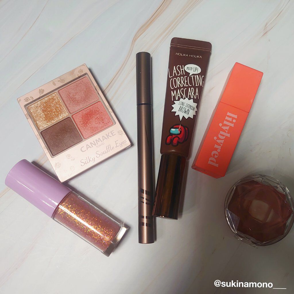 やーーーーーーっぱりこれかわいい🩷 淡いピンクにパステルカラーの多色ラメがほんっとに可愛くて🥺 久しぶりのブラウンリップ🤎 KATE ポッピングシルエットシャドウEX-3ウォームベリーポップ