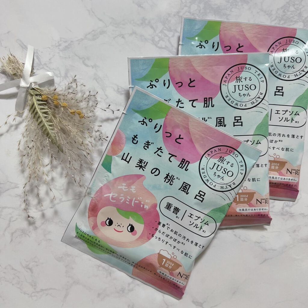 旅するJUSOJUSOBATHPOWDERを使用しました😊重曹(炭酸水素Na:洗浄成分)とエプソムソルト(硫酸Mg:保湿成分)有機ゲルマニウム配合でお肌の汚れを浮かせて汗でじんわり、スベスベちゅるんな素肌へ導いてくれます。ミルクは北海道産「ミ...