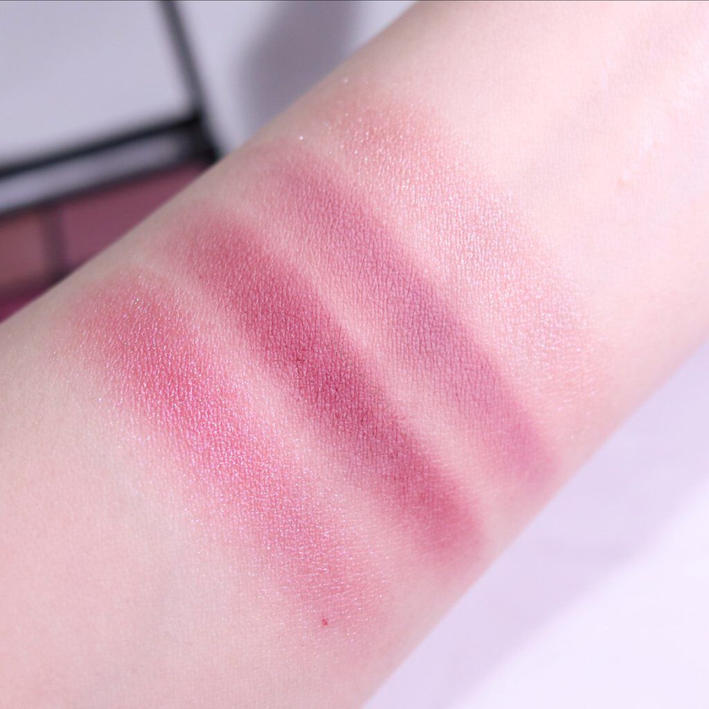 ブルベさんめちゃめちゃ沼るカラーじゃないですか🥹?!私は右上が特にすき💞💞 しっとり系の粉質で高発色◎マットよりラメの方が密着感あるかな😏💘 良い女顔になれそうな配色だけど使い方によってはかわいい系にも使えそう✌️