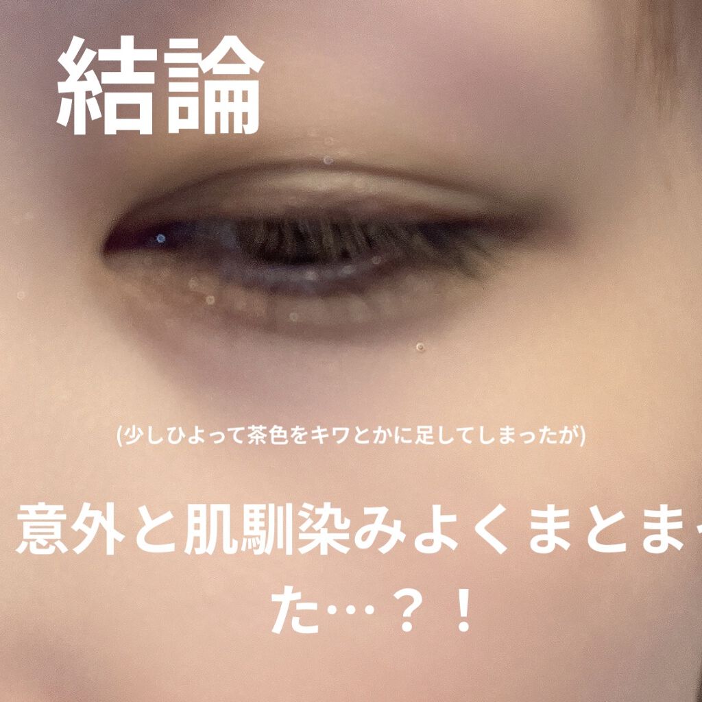 ・チョコレートのパレットです。いろんな色の茶色があるので、好みや似合う色によってアレンジできてよい。 ・今回は真ん中列右のラメまじり濃い茶色メインにしました。 目の陰影ができてデカ目になれる気がします。 ・ラメが最高でした。 ・しっとり質感なので粉飛びしなくてよかったです。また、溝にたまったりもせず優秀👏