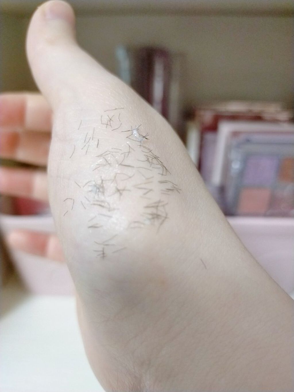 - 成分:イソドデカン、合成ワックス、水添ポリイソブテン、ポリエチレン、マイクロクリスタリンワックス、パラフィン、(アビエチン酸/マレイン酸)グリセリル、カルナウバロウ、パルミチン酸デキストリン、ナイロン-6、水、ジイソステアリン酸ポリグリセリル-2、リンゴ酸、ナフタレンスルホン酸Na、TEA、BG、オリーブ果実油、シリカ、フェノキシエタノール、デヒドロ酢酸Na、メチルパラベン、カーボンブラック