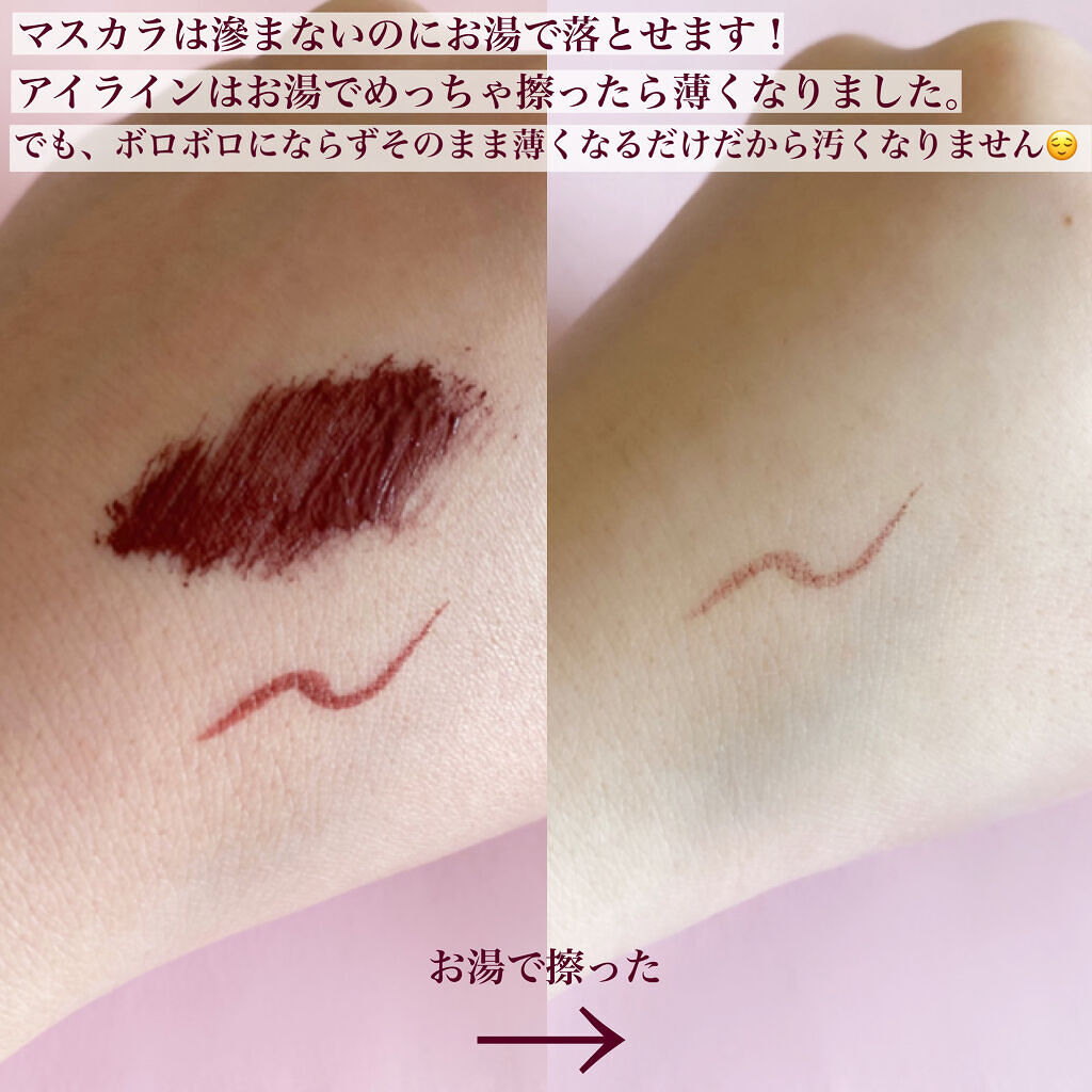 お湯OFFできる甘さ控えめのダークチョコアイライナー。 0.1mmの筆先でウォータープルーフ。ブラックだとはっきりしすぎちゃう!て方におすすめ。 艶やかなダークチョコマスカラ。 お湯OFFできるのにウォータープルーフ。繊維いりでまつ毛が長くなるよ。 ブラウンじゃ物足りないけど、ブラックは強すぎる!!って思うことが多いから、このアイライナーのカラーかなりお気に入り。