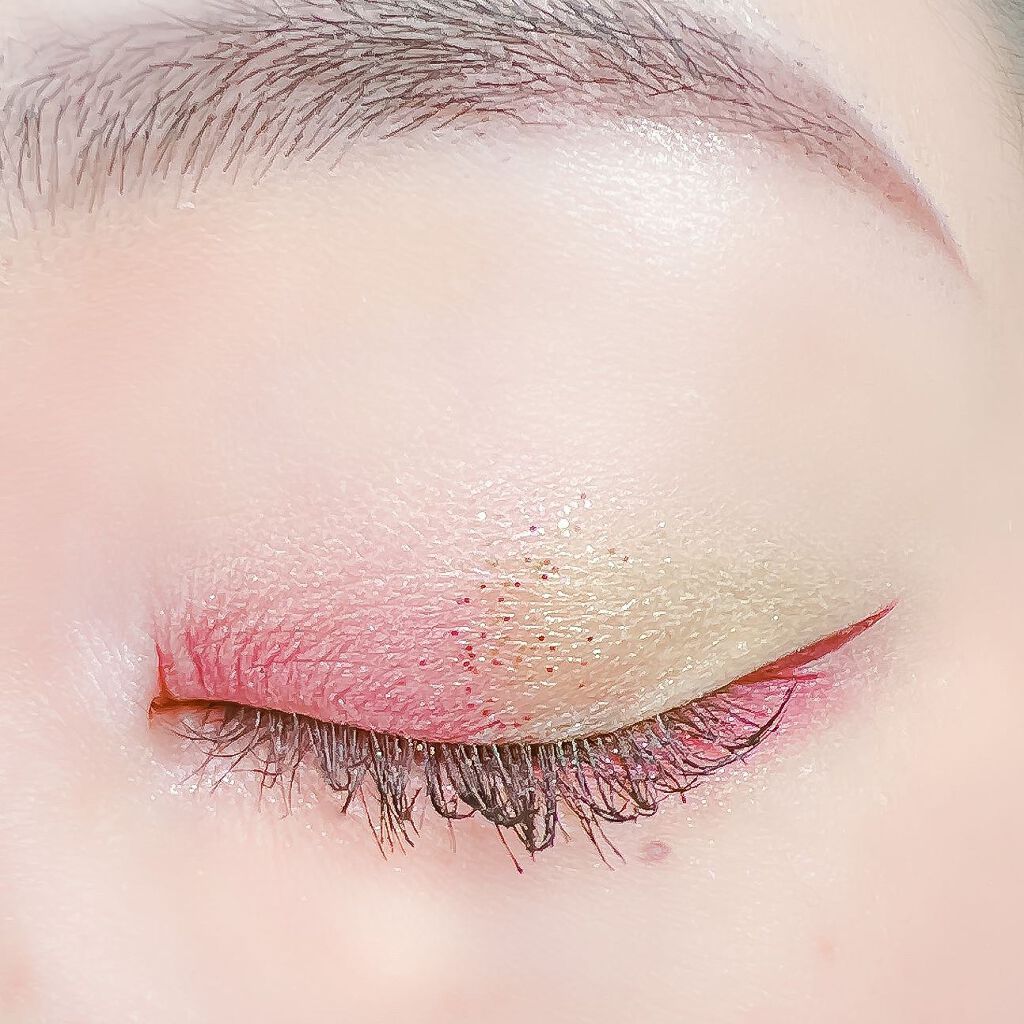 ピンクにグレージュも良いですね👌💗 今日は可愛らしい感じにしてみました💕 上下瞼黒目〜目頭側にラメを塗ってキラキラさせております🤩 目尻はマットのピンクを濃いめに重ねて💗 グレージュのアイライナーと相性◎