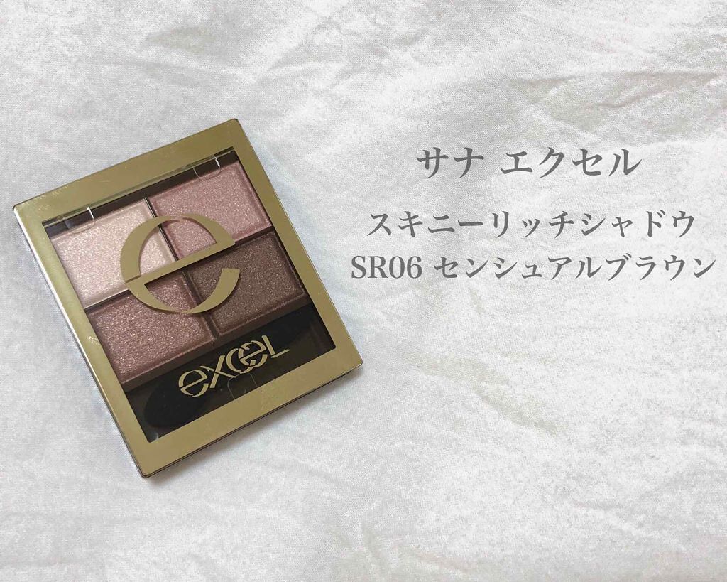 #サナエクセル#スキニーリッチシャドウ#SR06#センシュアルブラウン୨୧୨୧捨て色が無く特に右上のピンクが絶妙でラメが主張しすぎないお上品なラメ感としっとりした質感で愛用してます🐇💞もちろんこのアイシャドウも#アカリンの影響で購入しちゃいま...