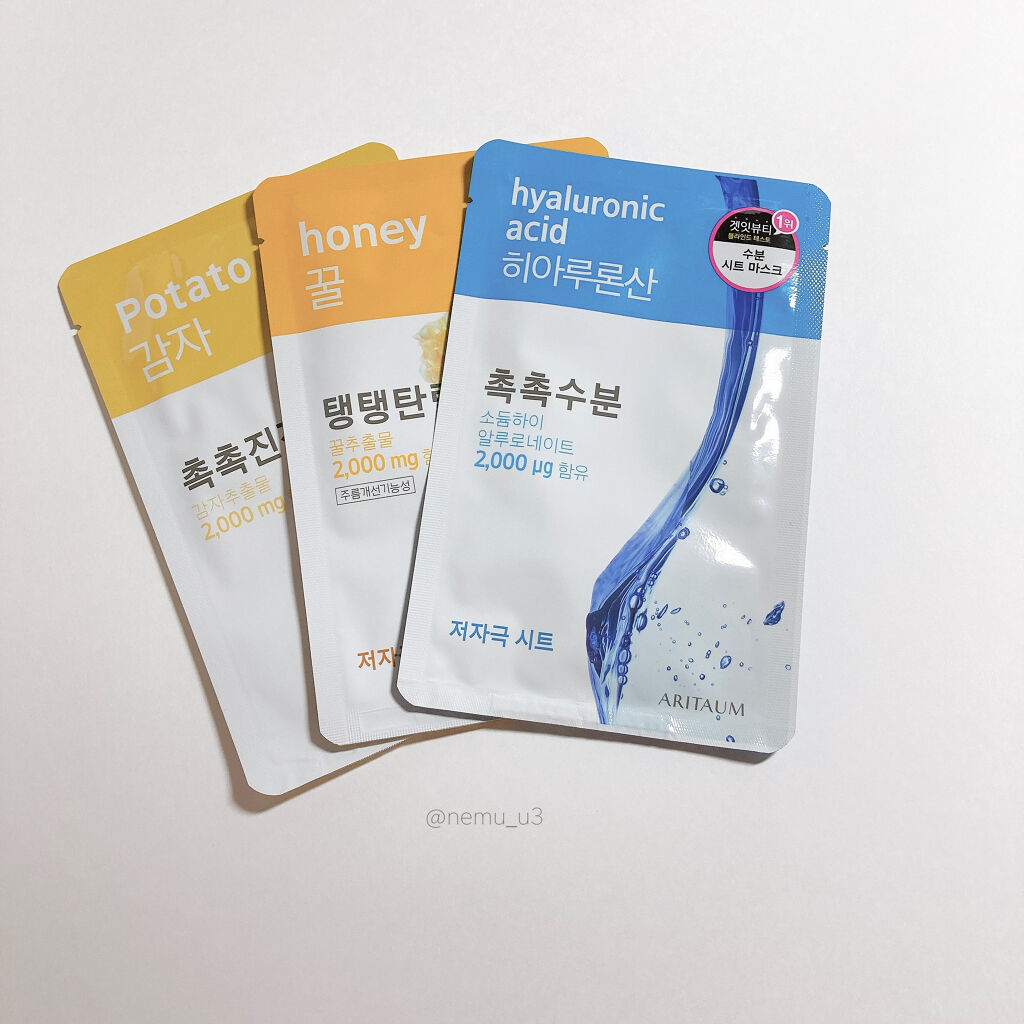 ARITAUMのフレッシュパワーエッセンスマスクです。楽天で購入しました。アモーレパシフィック系列のスキンケアは以前から好きで愛用しています。ARITAUMは初めて使いました。厚めのパックで最後まで乾燥が気にならずに使えました。香りも強くなく...