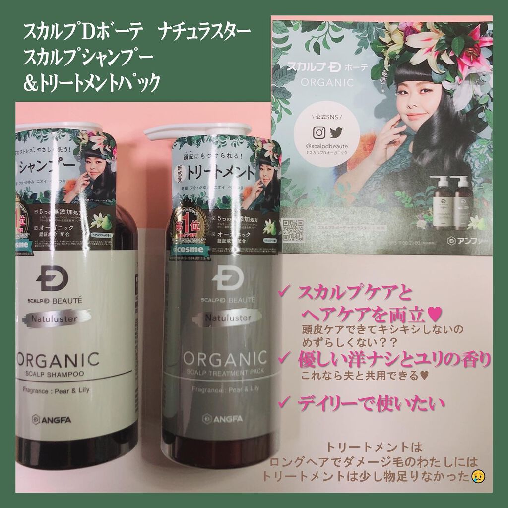 スカルプケアアイテムですが、あのスースー感のないタイプなので使いやすい。 私にはサラサラ仕上がりの為、ハイダメージの私の髪には毛先は乾燥するし、ボリュームが出るしでイマイチなところもありましたが、頭皮は、スースー感がなくてスッキリしたので、季節問わずスキでした♪ スカルプD ボーテシリーズから、オーガニック認証成分を配合した「スカルプD ボーテナチュラスター」が誕生。 クレンジング作用・キューティクル保護・豊富なミネラルをもつ“オーガニックミネラル”で本来のツヤ髪へと導きます。 香り:ペア&リリーのみずみずしい香り