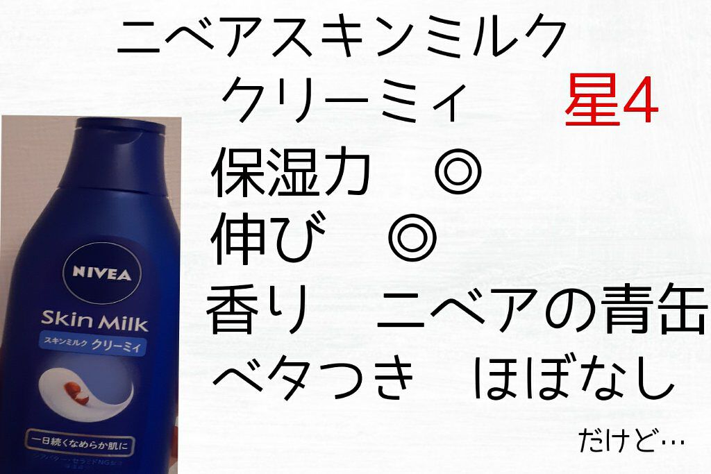 しっかり保湿してなめらかクリーミー肌に!!! ドラッグストアで購入したニベアのボディクリーム。さっぱり、しっとり、クリーミィと3種類あります。 とろけるような塗り心地で、全然ベタつかないし伸びも良いです。まさにクリーミィでなめらかな肌に🫧 お値段的にも気軽に試しやすい価格なので、ボディクリームお探しの方はおすすめです!!