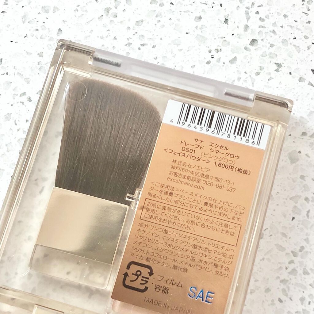 - <DS01 ピンクグロウ> リンゴ酸ジイソステアリル、トリエチルヘキサノイン、イソステアリン酸水添ヒマシ油、ポリグリセリル-3ポリジメチルシロキシエチルジメチコン、スクワラン、シア脂、ホホバ種子油、シリカ、トコフェロール、メチルパラベン、タルク、マイカ、酸化チタン、酸化鉄 <DS02 ベージュグロウ> リンゴ酸ジイソステアリル、トリエチルヘキサノイン、イソステアリン酸水添ヒマシ油、ポリグリセリル-3ポリジメチルシロキシエチルジメチコン、スクワラン、シア脂、ホホバ種子油、シリカ、トコフェロール、メチルパラベン、タルク、マイカ、酸化チタン、酸化鉄 <DS03 ブロンズグロウ> リンゴ酸ジイソステアリル、トリエチルヘキサノイン、イソステアリン酸水添ヒマシ油、ポリグリセリル-3ポリジメチルシロキシエチルジメチコン、スクワラン、シア脂、ホホバ種子油、シリカ、トコフェロール、メチルパラベン、タルク、マイカ、酸化チタン、酸化鉄 <DS04 スノーグロウ(限定)> リンゴ酸ジイソステアリル、トリエチルヘキサノイン、イソステアリン酸水添ヒマシ油、ポリグリセリル-3ポリジメチルシロキシエチルジメチコン、スクワラン、シア脂、ホホバ種子油、シリカ、トコフェロール、メチルパラベン、グンジョウ、タルク、ホウケイ酸(Ca/チタン)、マイカ、合成フルオロフロゴパイト、酸化スズ、酸化チタン、酸化鉄、赤226