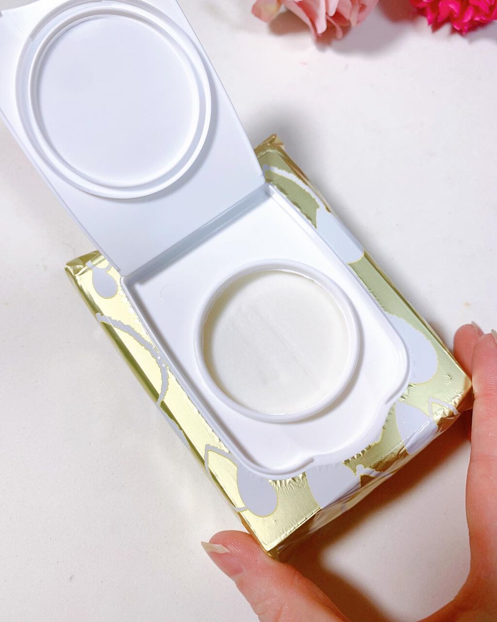 印象的な赤のパクト。 半透明感がかっこかわいい。 パフを手に取ってみると、ふかふか。 パフの先が尖っているから、細かいところも簡単に塗れるのが便利。 肌にのせてみると、しっとりジュワっと感があるのに、すぐに肌に密着。 カバー力もなかなか。 濃いシミや赤いニキビ跡は完全には消えないけど、色むらなんかは綺麗にカバー。 なのに自然。 厚塗り感が出ないから、元から肌が綺麗な人に魅せてくれるの。 つや感も良い感じ。 韓国系クッションファンデにありがちなテカテカにならないで、自然なツヤ。 そして1番のお気に入りポイントが崩れにくさ。 マスクをしてても汗かいてもキレイ。 多少のメイク落ちはあるけど、クッションファンデ特有のドロドロ感が無いの。