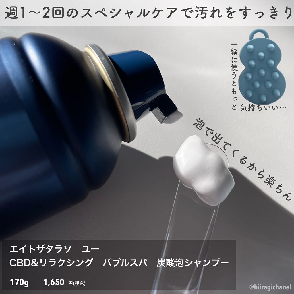エイトザタラソ エイトザタラソ ユー CBD&リラクシング バブルスパ 炭酸泡シャンプー | 1,650円 |