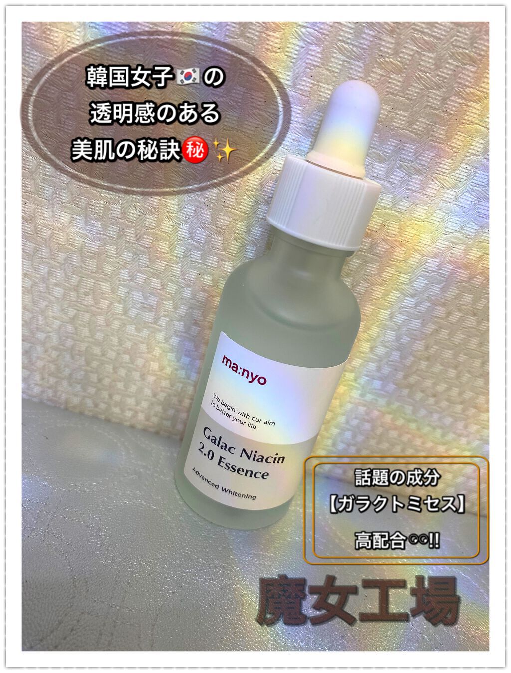 魔女工場ベストセラー美容液🎊 SNSでも良く見かけていたので気になっていました~🌟 高濃縮ガラクトミセスを93.69% 保湿成分ナイアシンアミドを4%配合。 水のようにサラッとしたテクスチャーでさっぱりとした使い心地。
