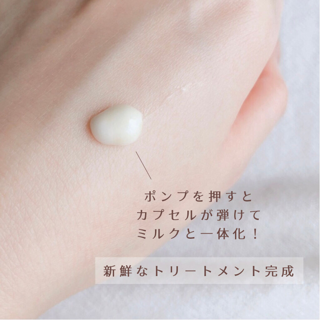 - ☆「ぷるぷるカプセル」がしっかり補修。なのに、軽い仕上がり。パサつき、ひろがり、うねりフリーへ。☆ ポイント1: 極小サイズのオイル「ぷるぷるカプセル」がキューティクルの内部まで浸透。髪を内部から補修。しっとりまとまるのに、さらさらな仕上がりの両方を叶えます。 ポイント2:使う直前に弾けて新鮮!従来の3倍のトリートメント成分が凝縮。ポンプを押した瞬間に「ぷるぷるカプセル」が弾けてミルクと一体化する特殊パッケージを採用。軽いテクスチャーで、さらさらの仕上がりになる美容乳液トリートメント。