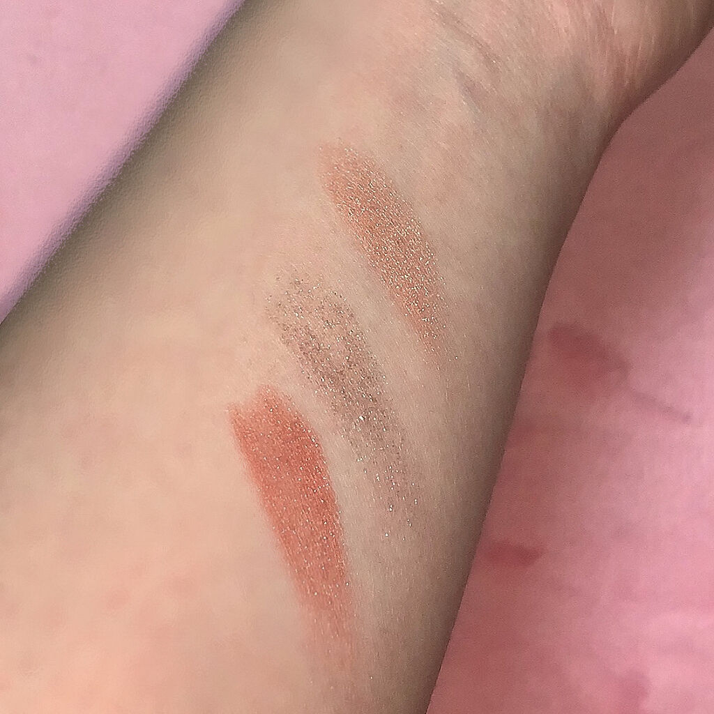 muiceのラメはギラギラっていうより濡れ感ラメみたいなラメであんまラメの主張がなくてラメ度強いのは苦手っていう方におすすめ WHOMEEのラメはちょっと発色もありつつラメとあるっていう二刀流✨ ADDICTIONの煌めきがもう大人っぽいし密着力もあっていい意味で言葉が出てこない😂