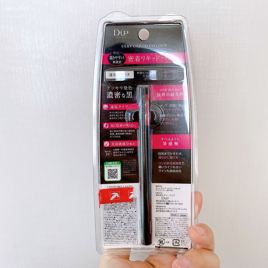 D-UPシルキーリキッドアイライナーWPBK漆黒ブラック濃密な漆黒ブラックで目元をくっきり強調。極細0.1mmの筆先で細ラインから太ラインまで自在に描ける。滑らかな描き心地でするするとラインが引ける使用。ウォータープルーフ処方:水・汗・皮脂に...