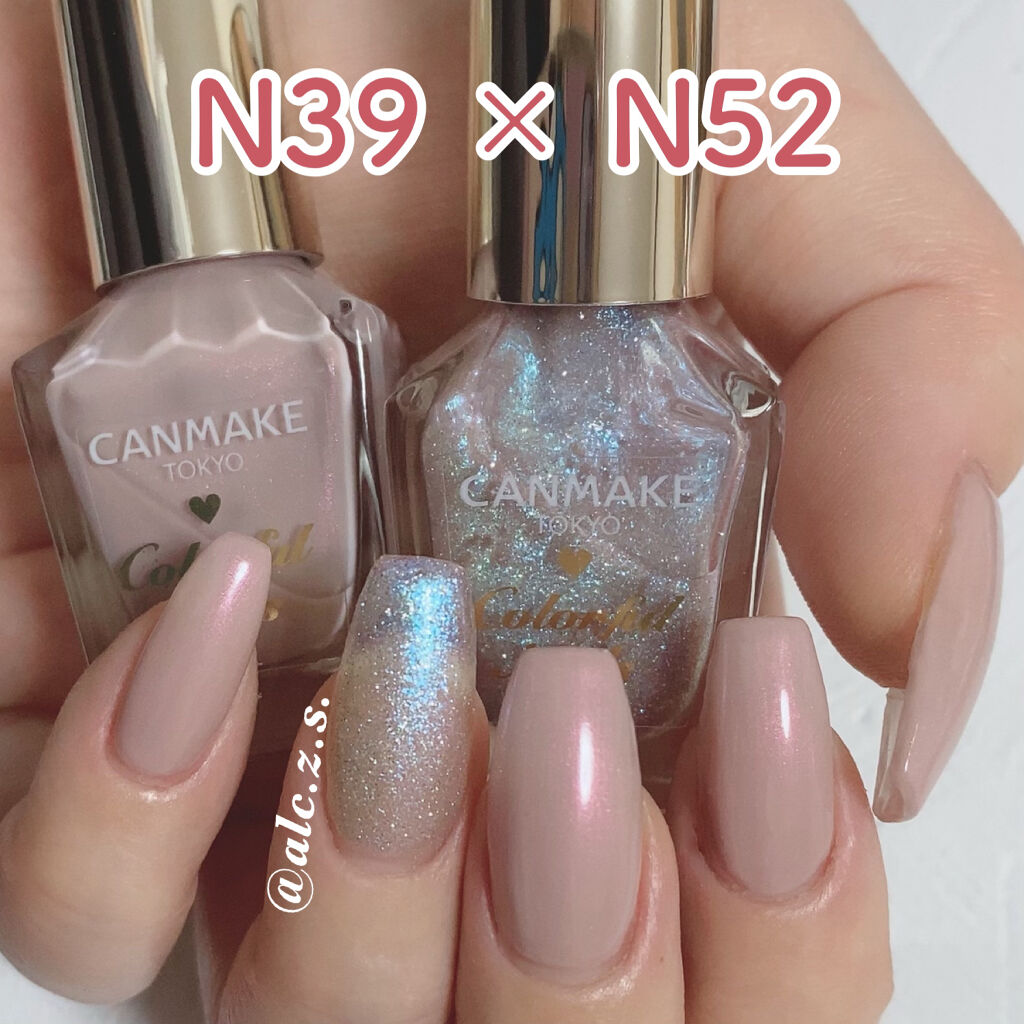 CANMAKEのベースコートはもちろん本来の使い方でも優秀ですが2度塗りするとほんのりコーラルっぽくて春にぴったりなカラーなのでカラーポリッシュ変わりに使ってみるのもすごくおすすめです✨ いろんなカラーでやってる塗り方だけどこれかなり失敗しづらいなーと思っていて悩んだらこれにしがちです😂 そして組み合わせに迷った時は相性がいいカラーが多いので同じメーカーのネイルで揃えてみるのもおすすめです✨